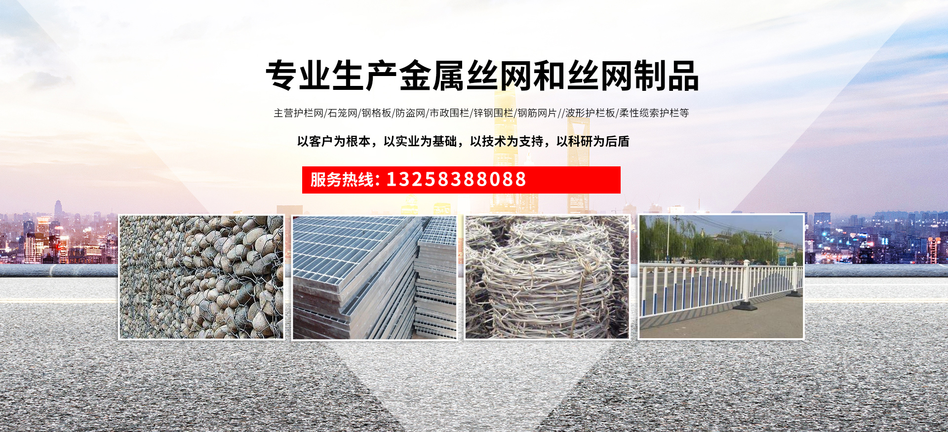 成都宏旭金屬絲網制造有限公司主營護欄網系列、石籠網系列、鋼格板、防盜網、市政圍欄、鋅鋼圍欄、鋼筋網片、聲屏障系列、波形護欄板、柔性纜索護欄、SNS邊坡防護網等其他絲網類產品。特殊規(guī)格可加工定做,也可根據客戶來圖來樣定做。自創(chuàng)業以來,公司一直堅持市場為導向,以客戶為根本,以實業為基礎,以技術為支持,以科研為后盾,集科研、生產、經營為一體,不斷研制開發(fā)新產品,開拓市場,走綜合發(fā)展之路。多年來,公司憑借過硬的質量,良好的信譽、優(yōu)質的服務、合理的價格,贏得了市場和商家的一致好評。